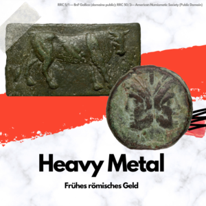 Denn Rom ist im Vergleich zu anderen Städten der griechisch-römischen Antike recht spät dran, Münzen heraus zu geben. Dafür gibt es dann umso mehr zu entdecken, sobald es mal losgeht. Das römische Geldsystem besteht aus vermeintlich widersprüchlichen Elementen und ganz schön schweren Dingen.